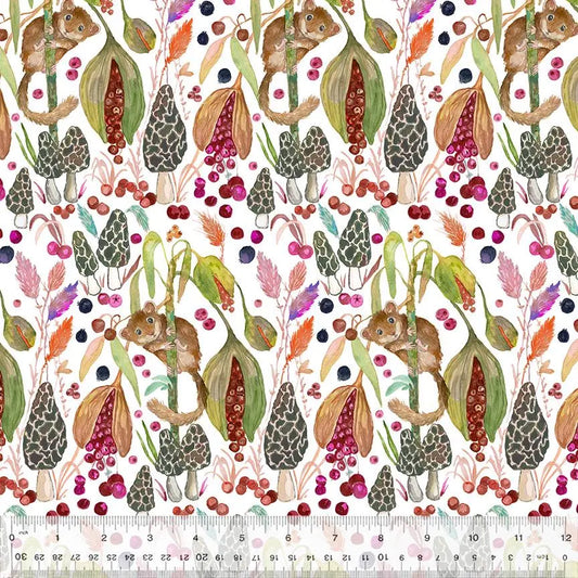 Forest Fruits Fabric by Betsy Olmsted 54770D-1 White Little Dormouse