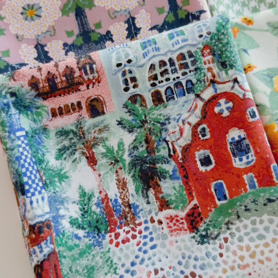 Barcelona by Katarina Roccella is a tribute to the artistry of a city that lives and breathes creativity. Featuring flowing Art Nouveau organic shapes, mosaic-like patterns, and bold whimsical jewel tones of emerald green, cobalt blue, and terracotta, this collection takes the vibrant essence of Barcelona to your sewing & quilting projects.